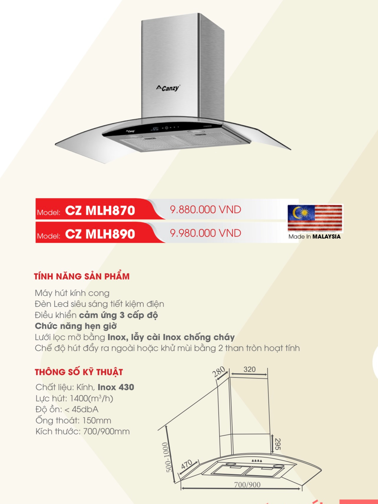 Hôm nay VIETKIT HOME mời quý khách hàng cùng tìm hiểu về máy hút mùi CZ MLH870 đang hot trong thời gian gần đây nhé.