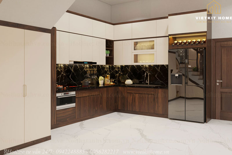 Tủ Bếp Chữ L Gỗ Óc Chó