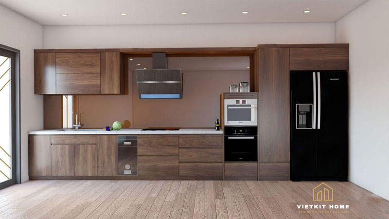 Tủ Bếp Gỗ Óc Chó Chữ I