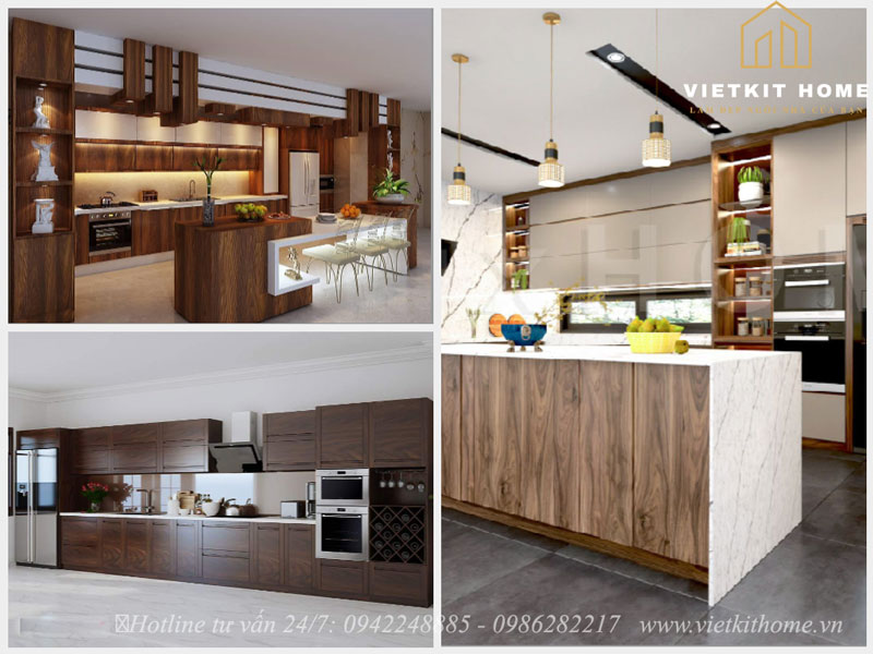 Các phong cách thiết kế tủ bếp gỗ óc chó