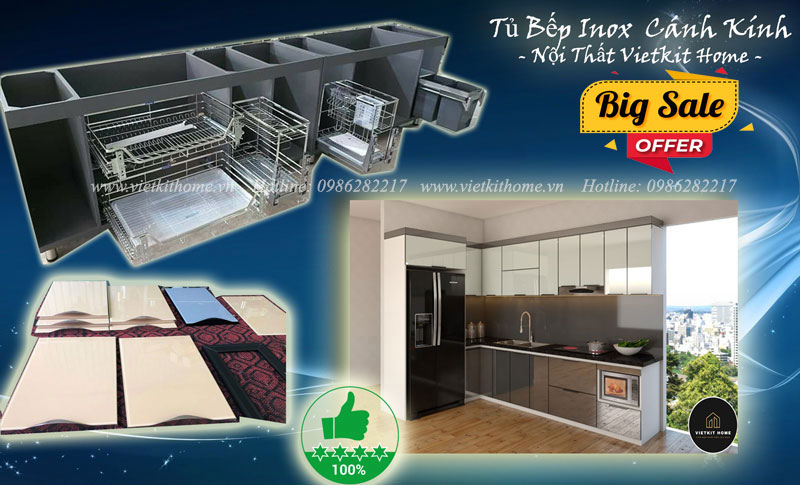 Bạn muốn mình gợi ý mẫu theo phong cách cụ thể (hiện đại, sang trọng, tối giản…) hay chọn theo diện tích bếp của bạn? Nếu có ảnh hoặc kích thước bếp, mình có thể thiết kế phác thảo tư vấn tỉ mỉ giúp bạn luôn nhé! Phục vụ Quý khách là niềm vui của vietkithome chúng tôi!