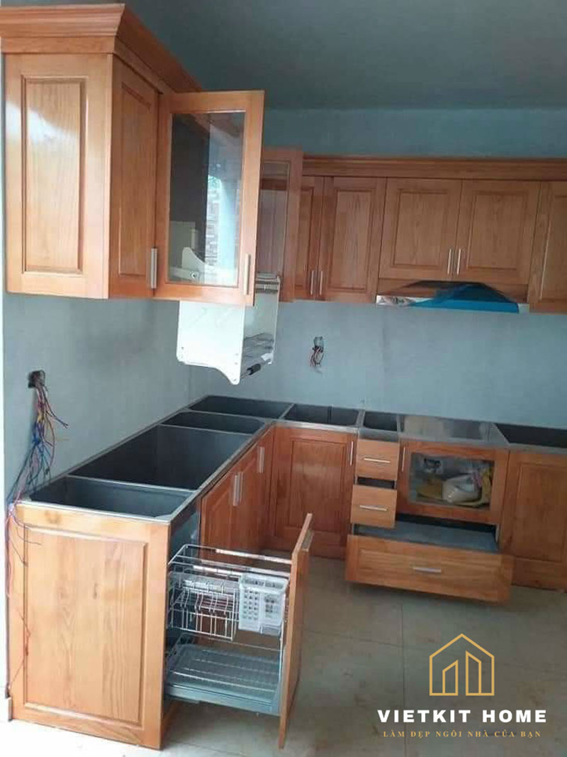 Tủ Bếp Inox Cánh Gỗ Sồi- VIekit Home