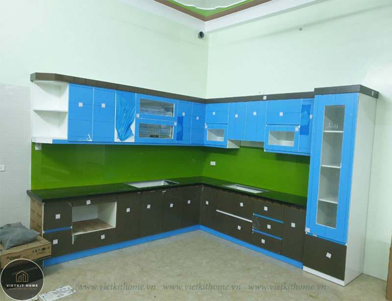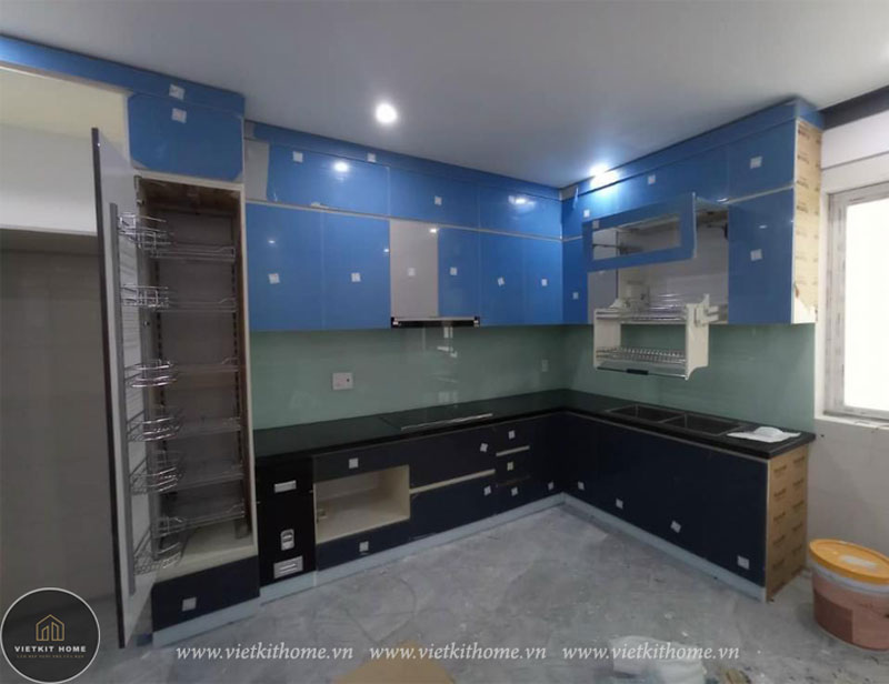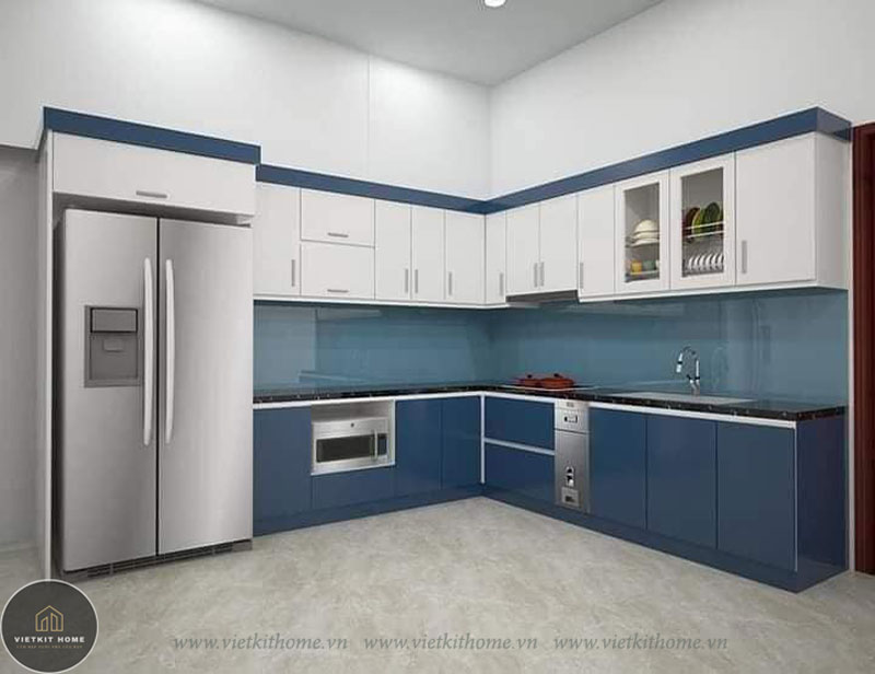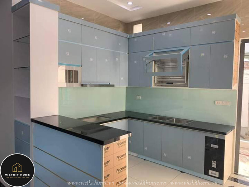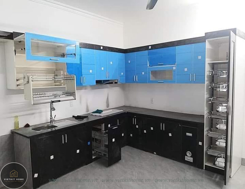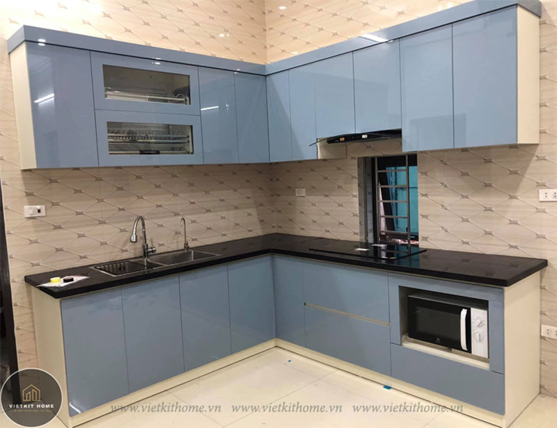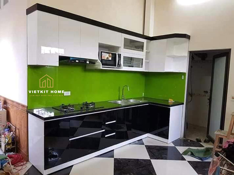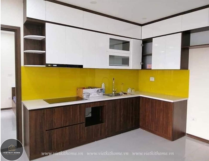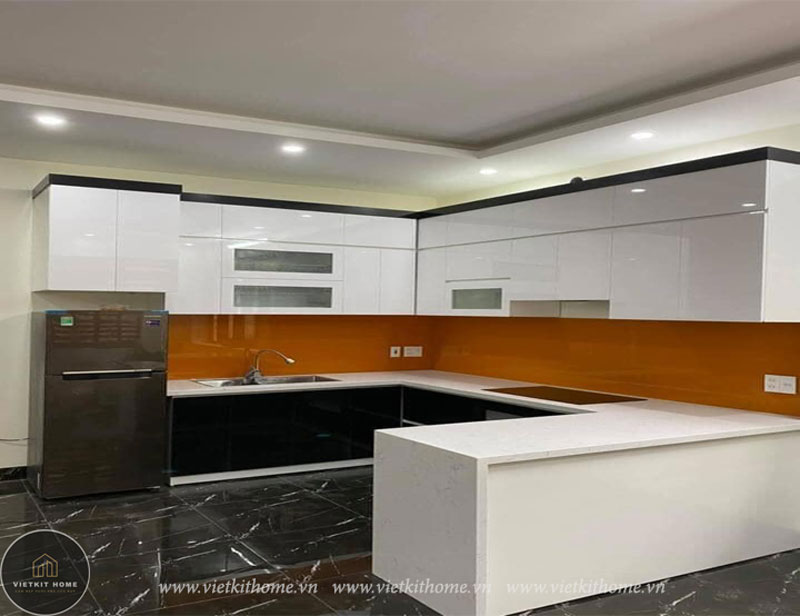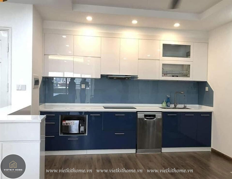 Lời khuyên từ những chuyên gia của Nội thất Vietkit Home: Hãy kết hợp Laminate cho cánh tủ dưới và Acrylic bóng gương cho cánh tủ trên trong bộ tủ bếp thùng Picomat của gia đình bạn để tận dụng tối đa ưu điểm của cả hai chất liệu cánh tủ này.
